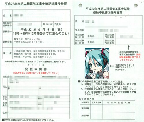 2010/06/06(日)は第二種電気工事士の筆記試験日です。 試験申込みをしてから受験票が届くまで、何の音沙汰もないのできちんと受理されているのか結構不安だったのですが、いよいよその受験票が今日届きました。 親展。 早速、中を確認であります。 受験票 ………